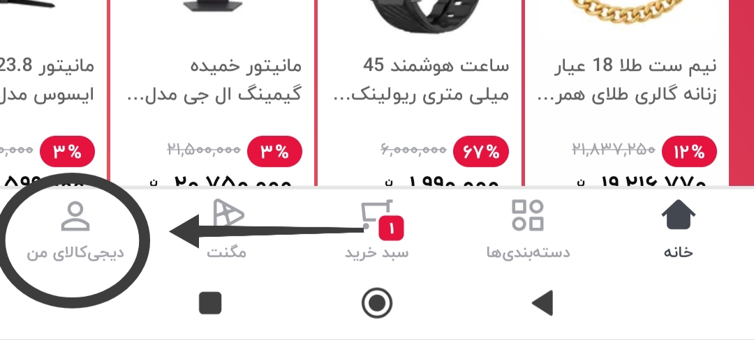 وارد اپلیکیشن شوید و روی قسمت دیجیکالای من کلیک کنید