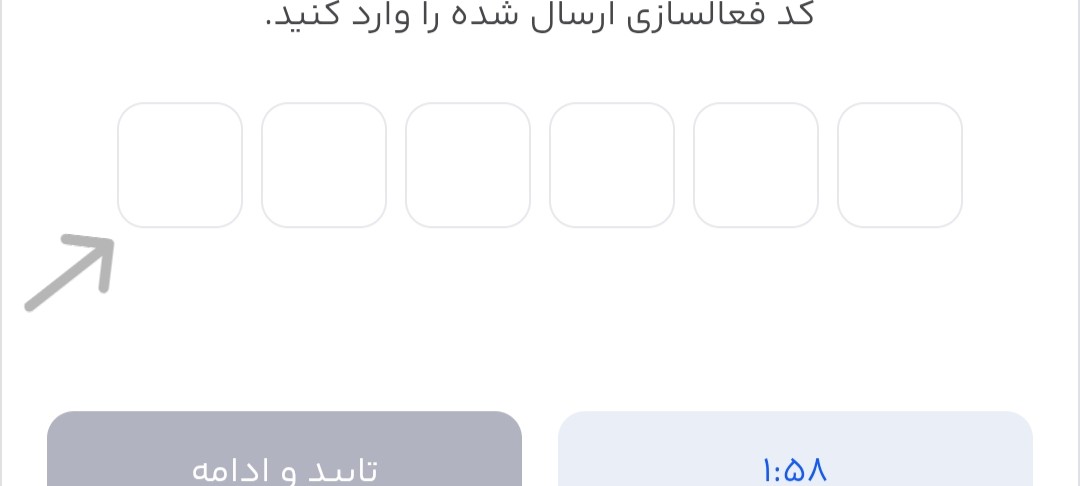 کد ارسال شده را در مکان مشخص شده وارد کنید